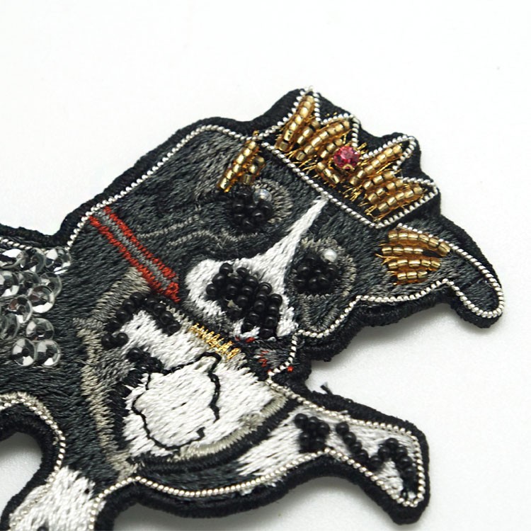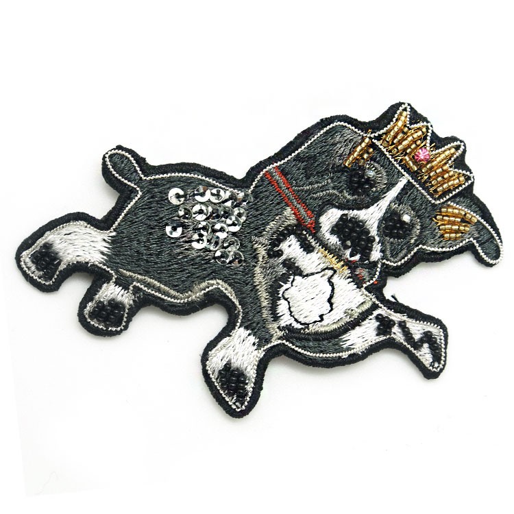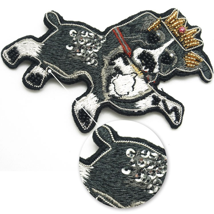 新款特種繡花章卡通小狗手工印度繡布貼服裝鞋帽金屬絲徽章定做